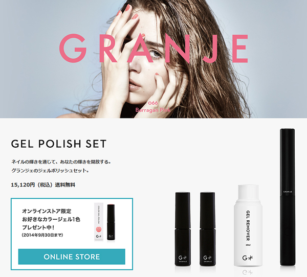 ジェリーネイルの上位ブランドであるグランジェ。しっとりした大人の女性の指先を演出できるジェルネイルキットで非常に人気の高いブランドです。ノーマルのジェリーネイルのお姉さん的な位置づけをしています!